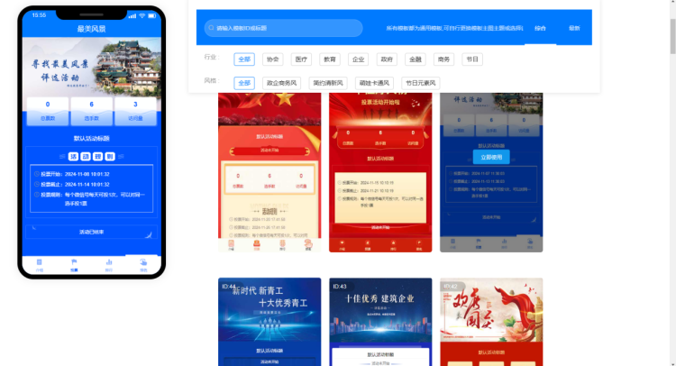 第二步,完成账号的注册登录操作后,系统会自动跳转至活动后台。在【模板中心】,选择与主题相契合的模板后可直接套用。