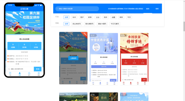 其次,登录后,系统会自动跳转至活动后台。点击【模板中心】,可以选择与活动主题相契合的模板样式。