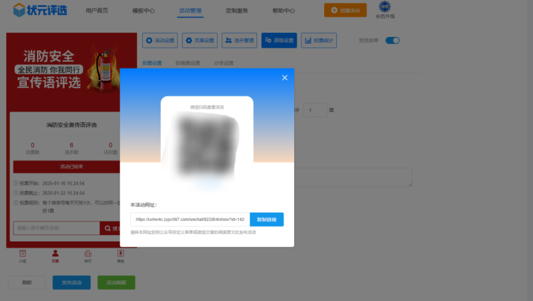 上述步骤完成,且仔细检查确定无误后,点击【发布活动】,系统会自动生成投票链接和二维码。将其保存下来并分享出去,即可开启投票评选活动,选出最终的获胜者。