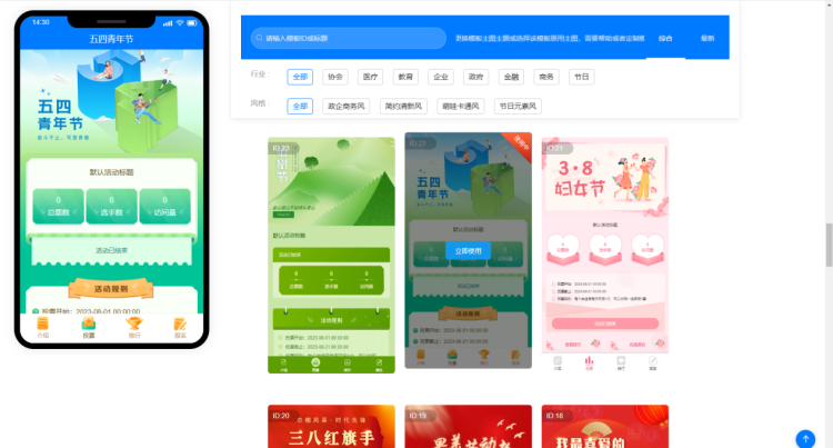 第二步,成功登录后,系统会自动跳转至活动后台。在【模板中心】,可以看到各式各样的模板,选定合适的可直接一键套用。