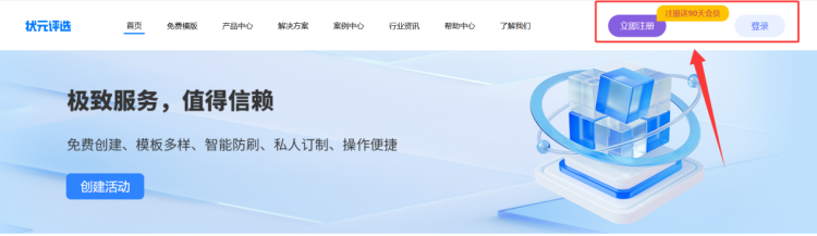 首先,在百度中搜索状元评选,进入平台首页后,右上角点击【注册】按钮,输入手机号、验证码等信息,注册账号。老用户直接登录即可。