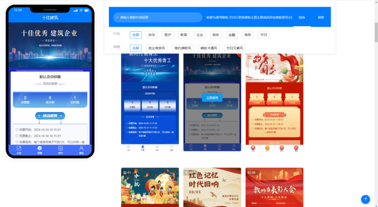 其次,登录后,系统会自动跳转至活动后台。点击【模板中心】,选定合适的模板样式后可一键套用。