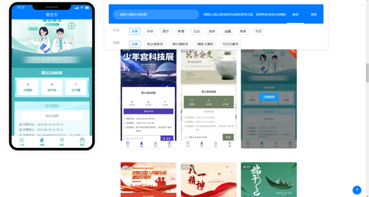 第二步,成功登录后,系统会自动跳转至活动后台。在【模板中心】,选择与主题相契合的模板样式,如知识产权十大事件、创业之星等。