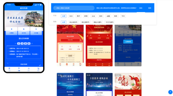 第二步,成功登录后,系统会自动跳转至活动后台。点击【模板中心】,可以选择与主题相契合的模板样式一键套用。