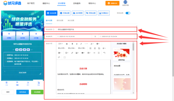 第三步,在【活动设置】中,修改活动名称、设置活动开始和结束的时间、编辑活动介绍。