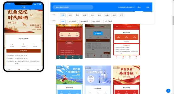 第二步,成功登录后,系统会自动跳转至活动后台。在【模板中心】,选定合适的模板样式后可直接套用。