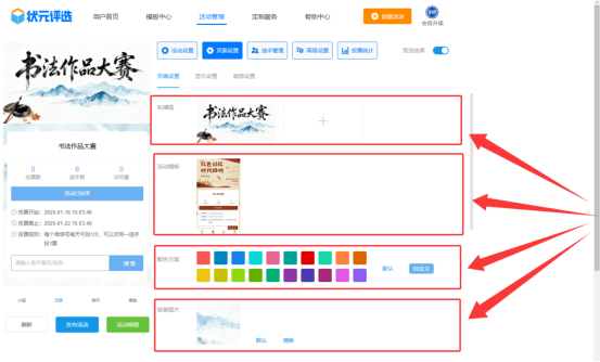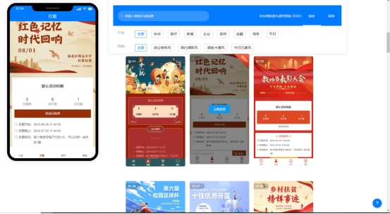 其次,登录后,系统会自动跳转至活动后台。点击【模板中心】,可以选择与主题相契合的模板样式,如知识产权十大事件、创业之星等。