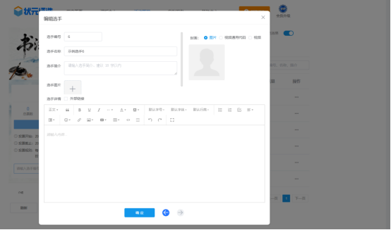 然后,在【选手管理】中,上传所有选手的个人资料,包括选手的名称、简介、照片或者视频等。