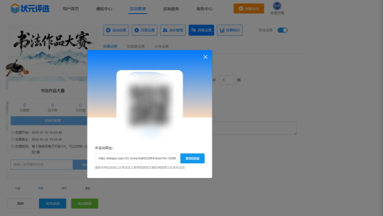 最后,点击【发布活动】,系统会自动生成投票链接和二维码。这样一场网络投票评选活动就制作完成了,是不是很简单?