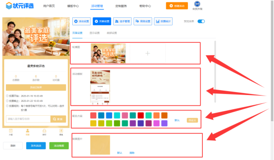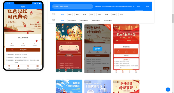 其次,成功登录后,系统会自动跳转至活动后台。在【模板中心】,可以选择与主题相契合的模板样式,选定后可一键套用。
