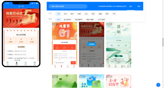 第二步,登录后,系统会自动跳转至活动后台。在【模板中心】,选定模板后可直接一键套用。