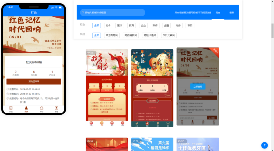 第二步,成功登录后,系统会自动跳转至活动后台。在【模板中心】,可以选择与主题相契合的模板样式,如知识产权十大事件、创业之星等。