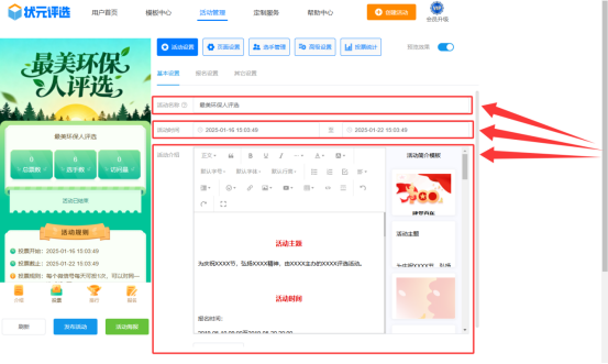 再者,在【活动设置】中,编辑活动信息,包括活动名称、时间、简介。