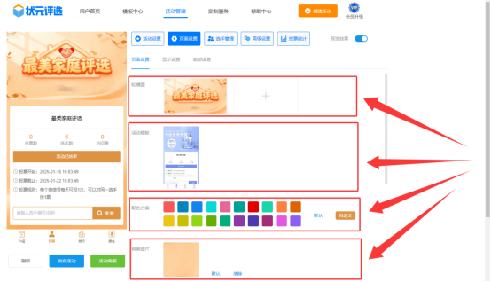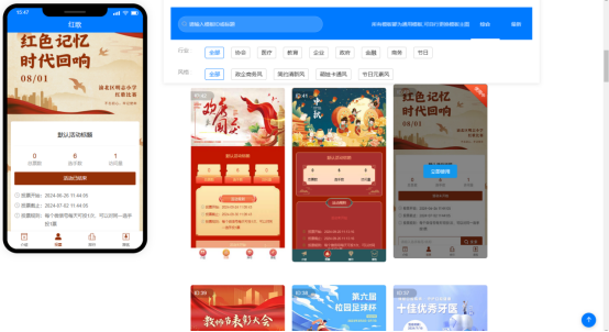 其次,成功登录后,系统会自动跳转至活动后台。在【模板中心】,选定与主题相契合的模板样式,如知识产权十大事件、创业之星等。