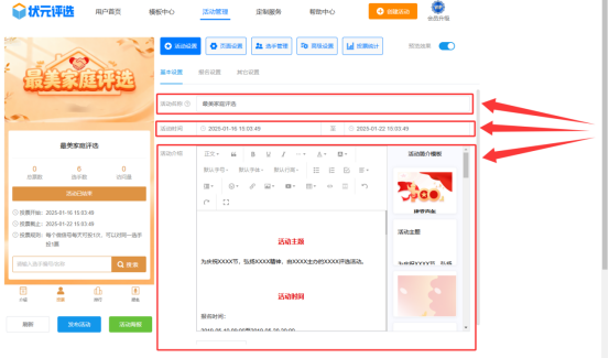 再者,在【活动设置】中,编辑活动信息,包括活动名称、时间、简介。