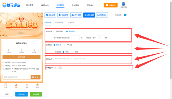 网络投票评选活动打破了地域与时间限制,让大众能便捷参与各类评选,既赋予公众话语权,增强其对活动的认同感,又能通过投票过程传播活动背后的价值理念,如反诈知识、景观美学等。同时,它为优秀对象提供展示平台,树立行业或领域标杆,激发群体向上动力,还能借助互动传播扩大活动影响力,实现评选 + 宣传 + 凝聚共识的多重价值。