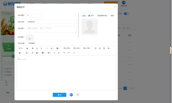 若想快速上传单份选手资料,点击 “示例选手” 选项即可直接操作;若需批量导入所有参赛选手信息,选择 “批量添加” 功能,就能高效完成多份资料的集中上传,适配不同场景需求。