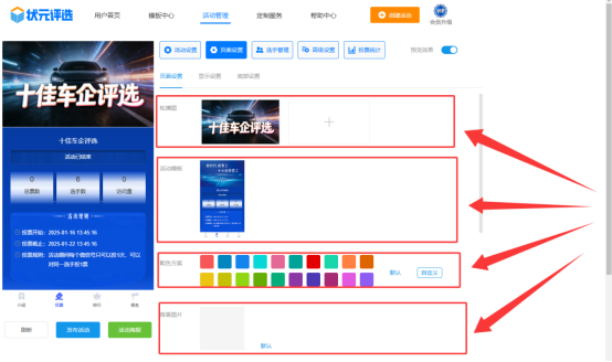 想要活动页面与 “十佳车企评选” 主题高度契合,可开展投票页面个性化定制,像替换主题轮播图、添加适配的背景音乐等,增强页面感染力。