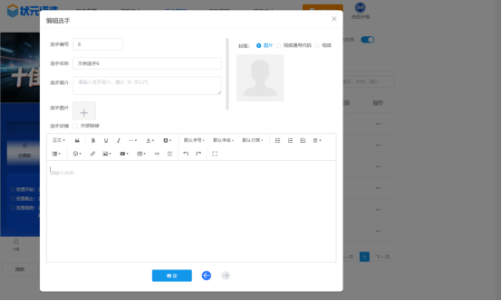 选手资料支持两种添加方式,可逐一录入也可批量上传,内容需包含车企名称、详细简介,还能附上相关照片或视频,全面展现选手风采。