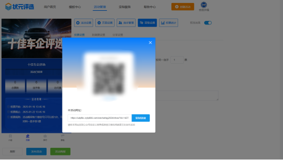 点击发布活动后,系统将生成专属投票链接及二维码。按照上述流程操作,十佳车企在线投票评选活动即可快速制作完成,是不是方便又快捷?